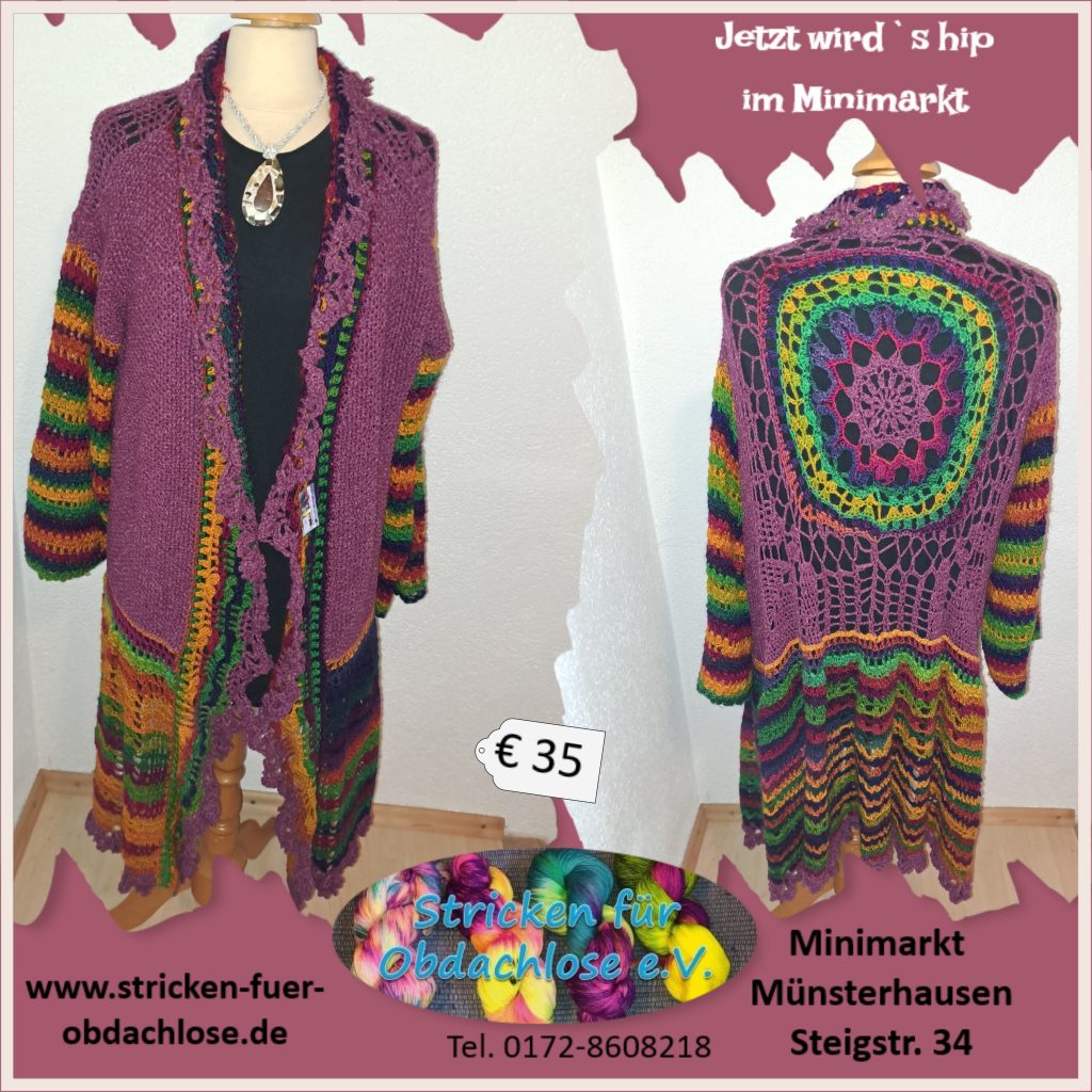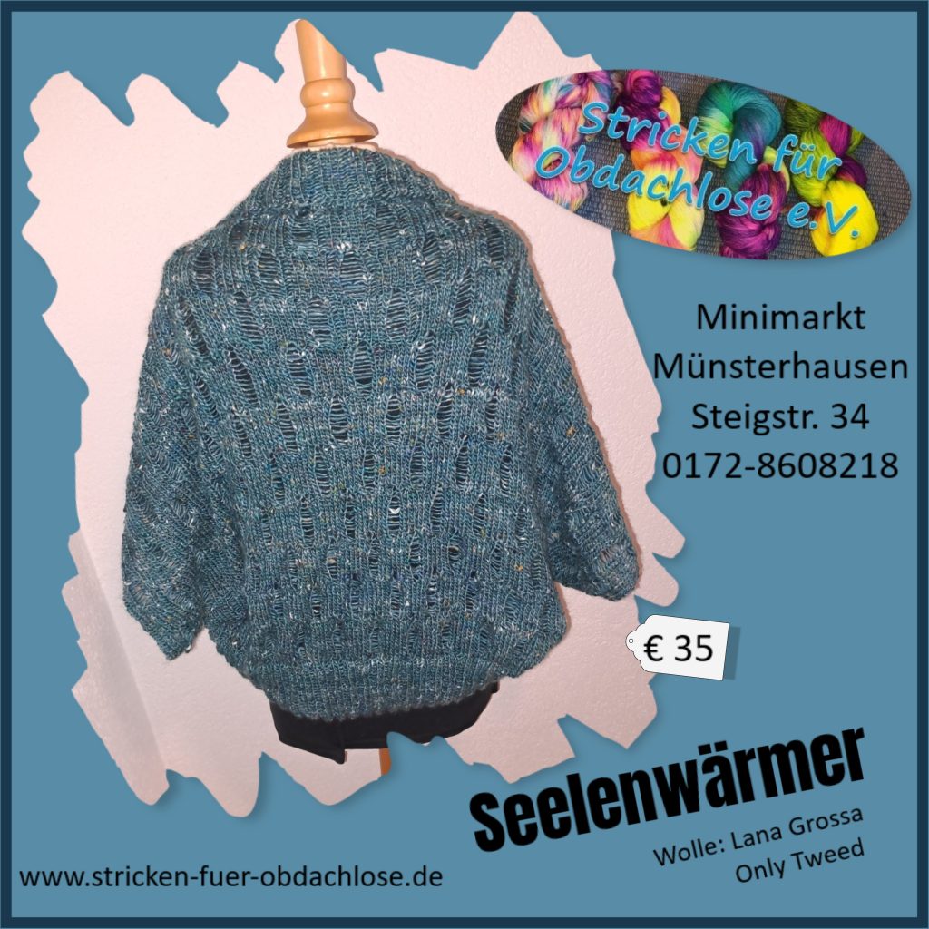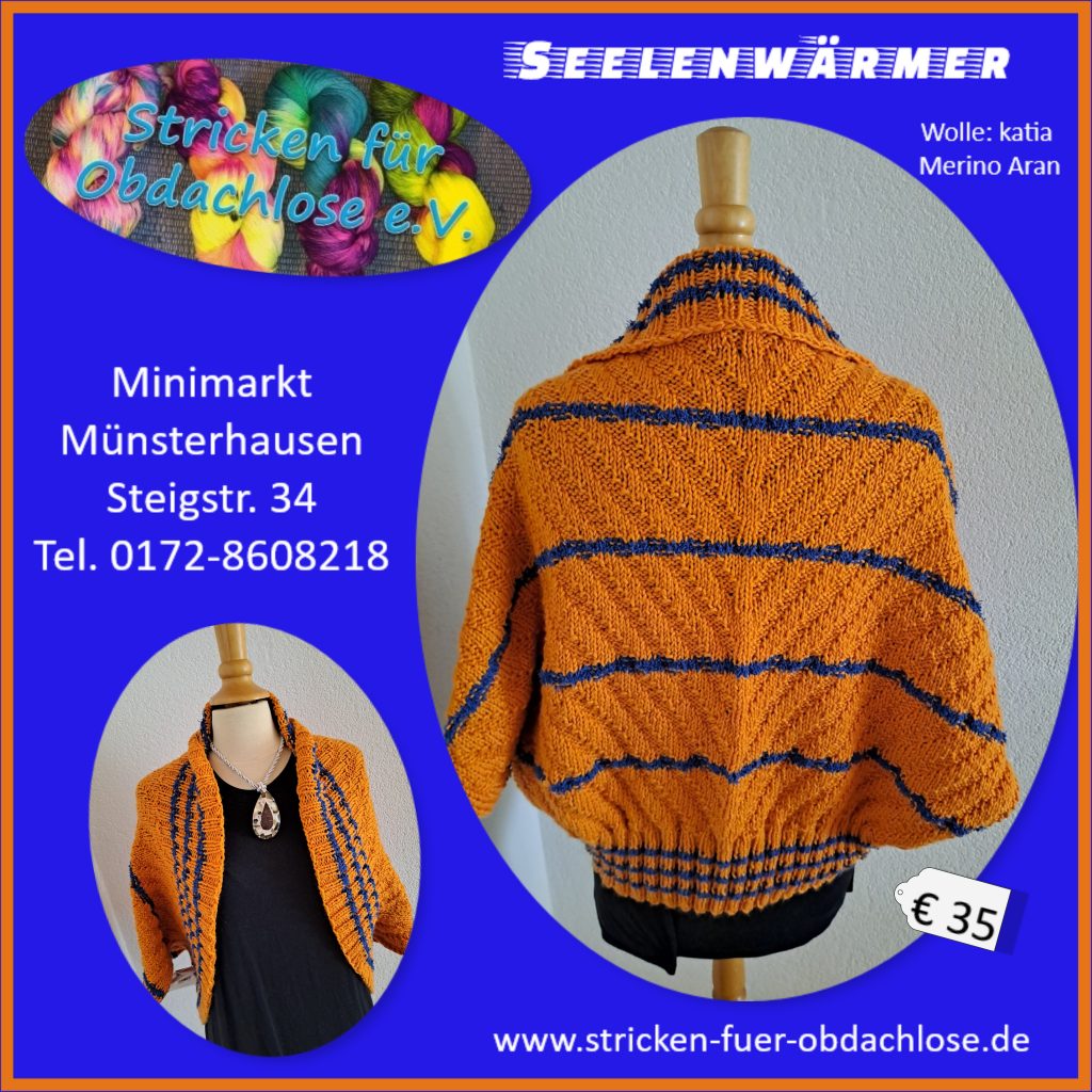 Bei Vorkasse und Übernahme der Versandkosten besteht die Möglichkeit, dass wir die handgefertigten Unikate und Socken auch versenden. Gerne können Sie unter info@stricken-fuer-obdachlose.de oder per WhatsApp unter 0172-8608218 Kontakt mit uns aufnehmen.