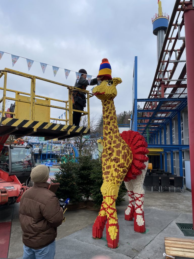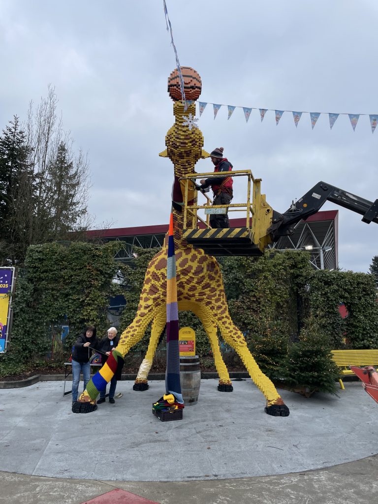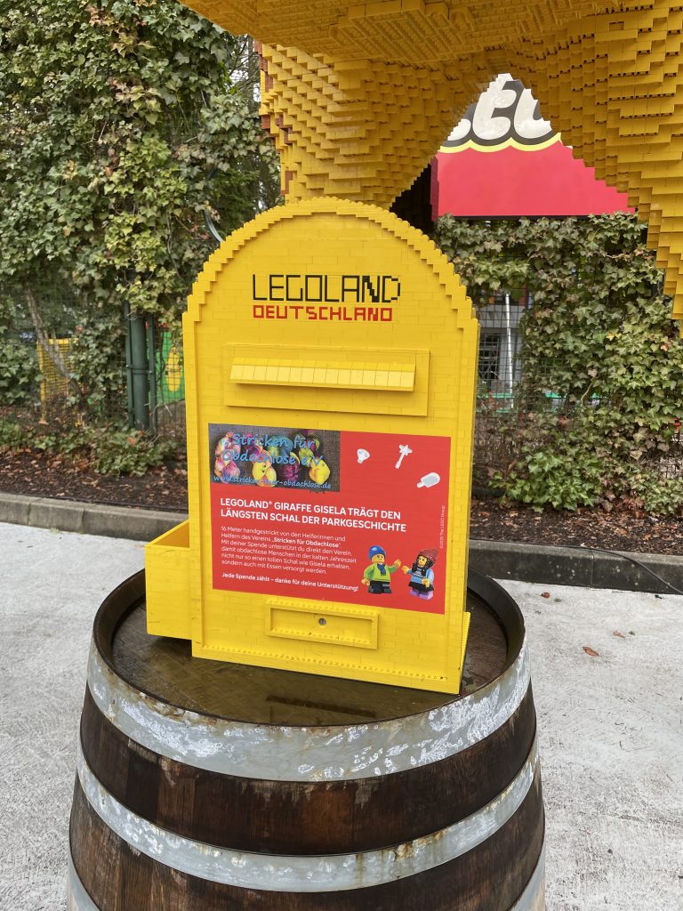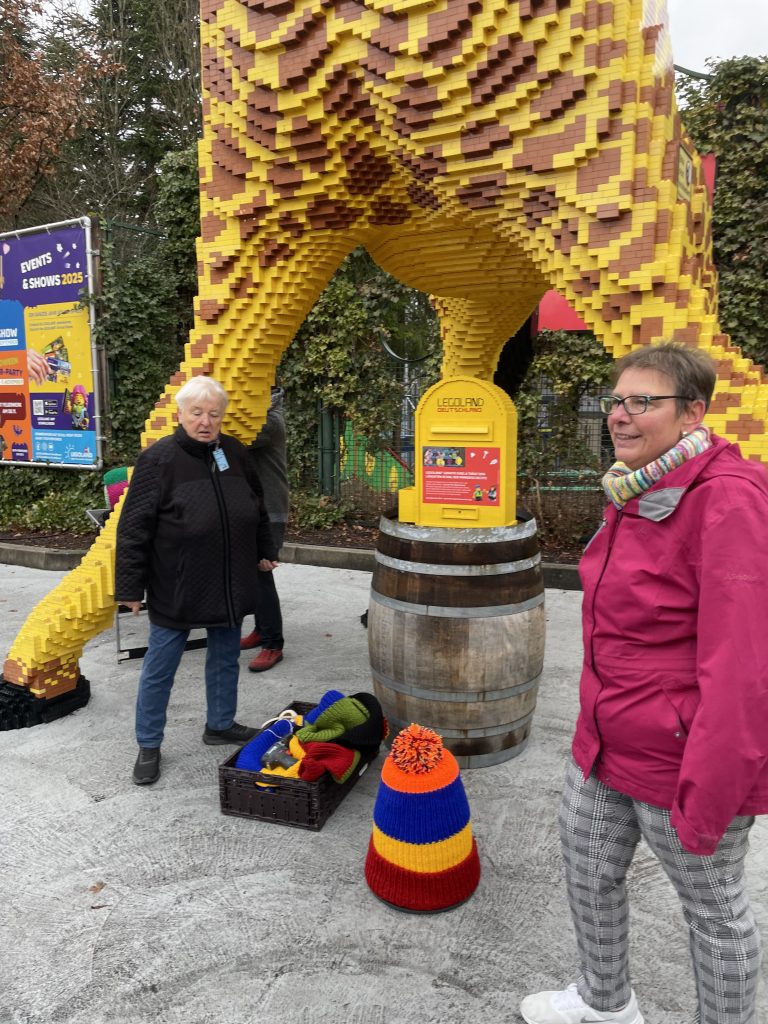 Die Legoland-Giraffe Gisela wurde von uns für die Wintersaison 2025 eingekleidet und erobert die Herzen vieler Menschen. Doch hinter ihrer bunten Kleidung verbirgt sich eine wichtige Botschaft: Die Aufmerksamkeit auf die Menschen zu lenken, die in unserer Gesellschaft oft übersehen werden – die Obdachlosen.