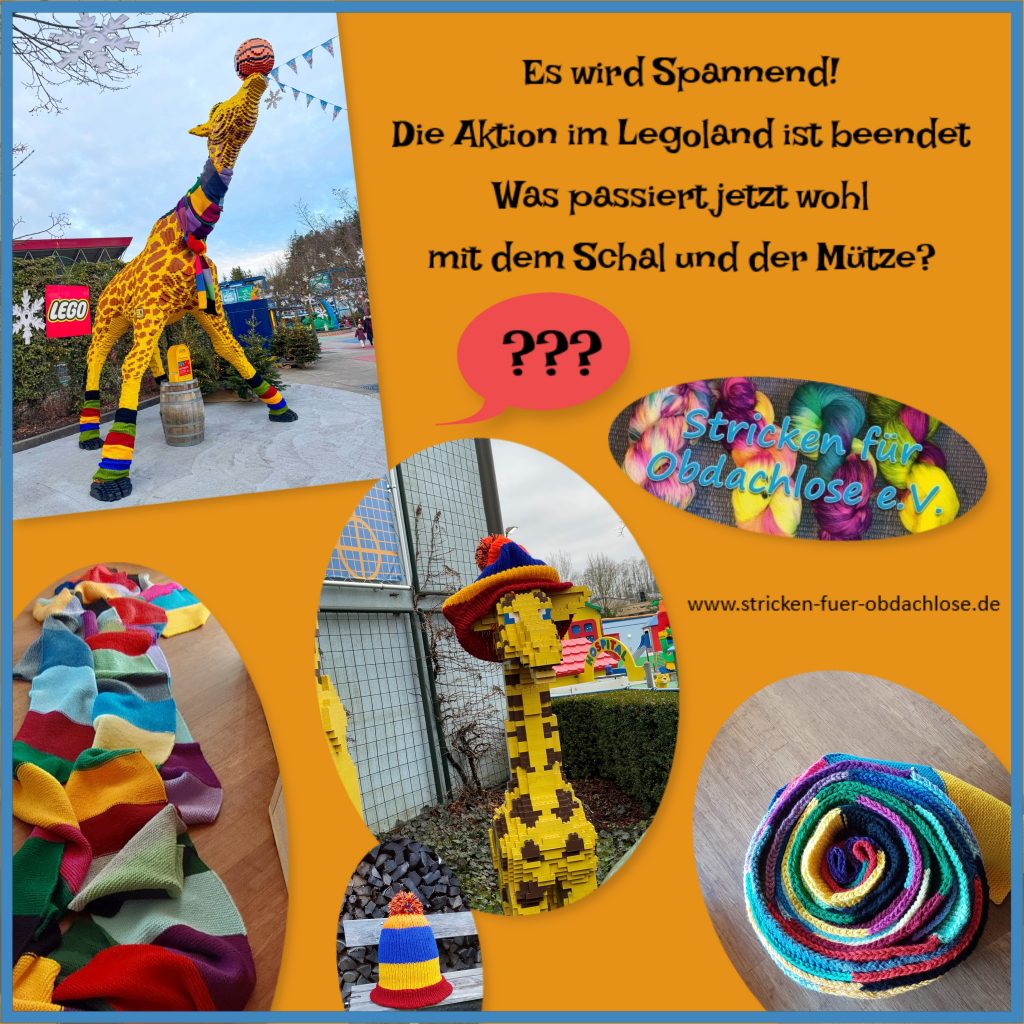 Die Aktion im Legoland ist inzwischen beendet. Schal, Mütze und Stulpen werden wir in Kürze für weitere aufmerksamkeitsstarke Aktionen nutzen – um unermüdlich auf die Not von obdachlosen Menschen aufmerksam zu machen, die Bekanntheit unseres Vereins zu erhöhen und so weitere Unterstützung und Spenden zur Finanzierung unserer Arbeit zu generieren.